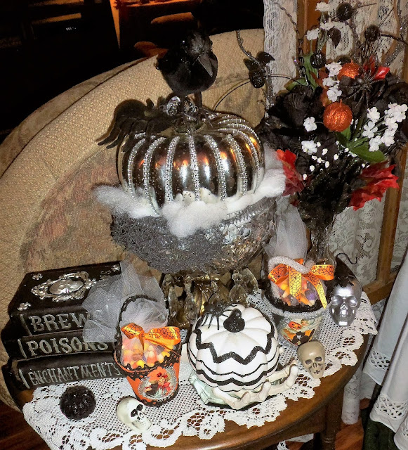 ReplyDeleteHow many Halloween goodies! The table in the corner is stunning and very spooky. The black and silver pumpkins are amazing