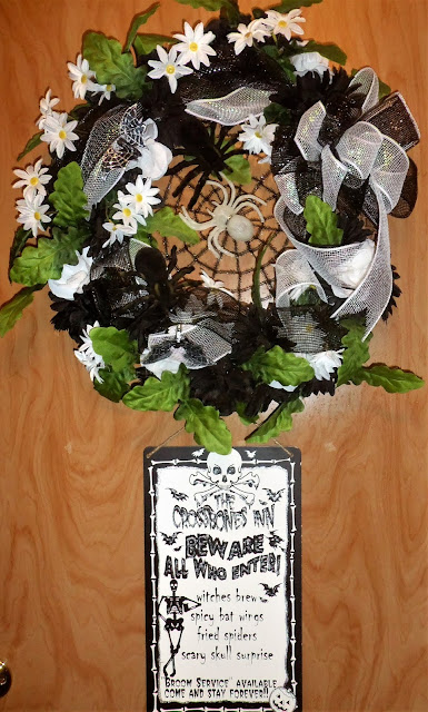 Below the wreath hangs another Halloween sign from Dollar Tree.......
