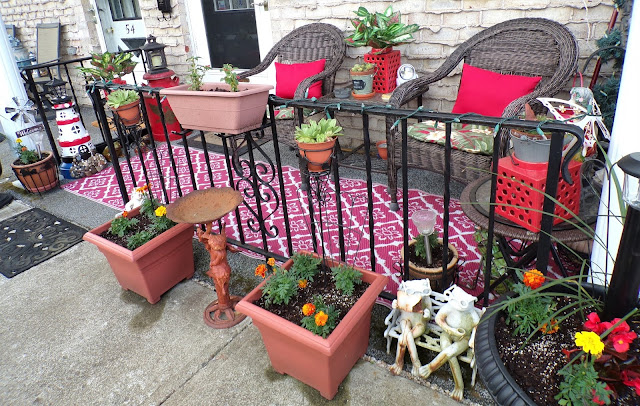 This is how the Front Porch looks now in the red, orange and yellow color theme that seems to work really well out here.......