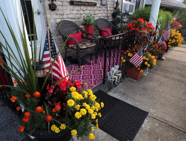 I only added a few American Flags to our Front Porch and Yard as decorations for Labor Day this year.....