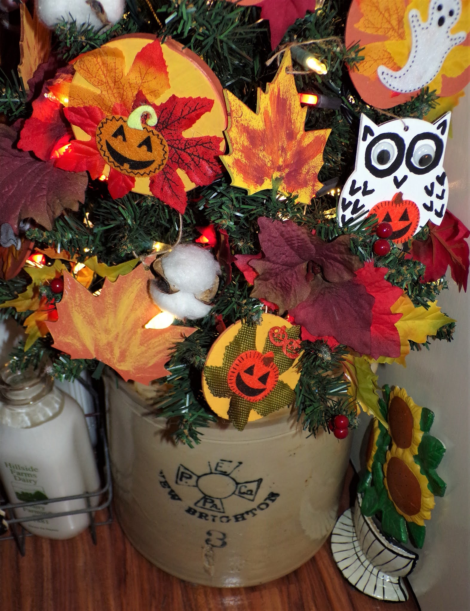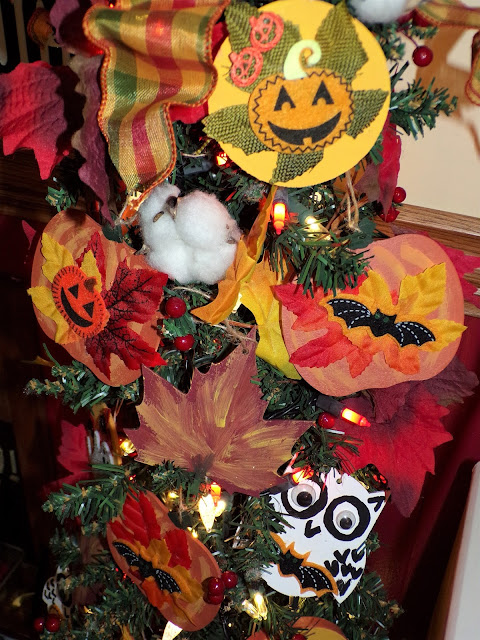 After deciding to bring down and set up the Tree I decorate in the Kitchen for Christmas and Winter last year from the attic and making a bunch of Fall and Halloween ornaments for it.....