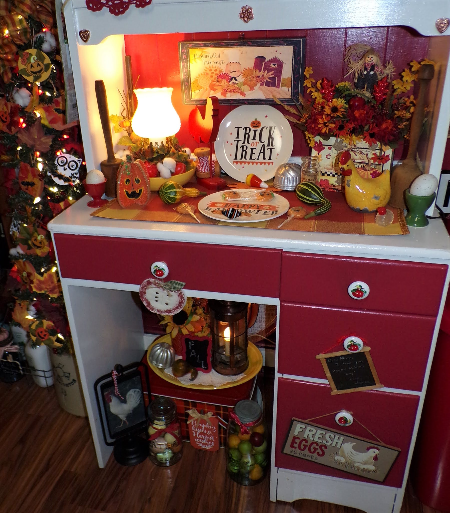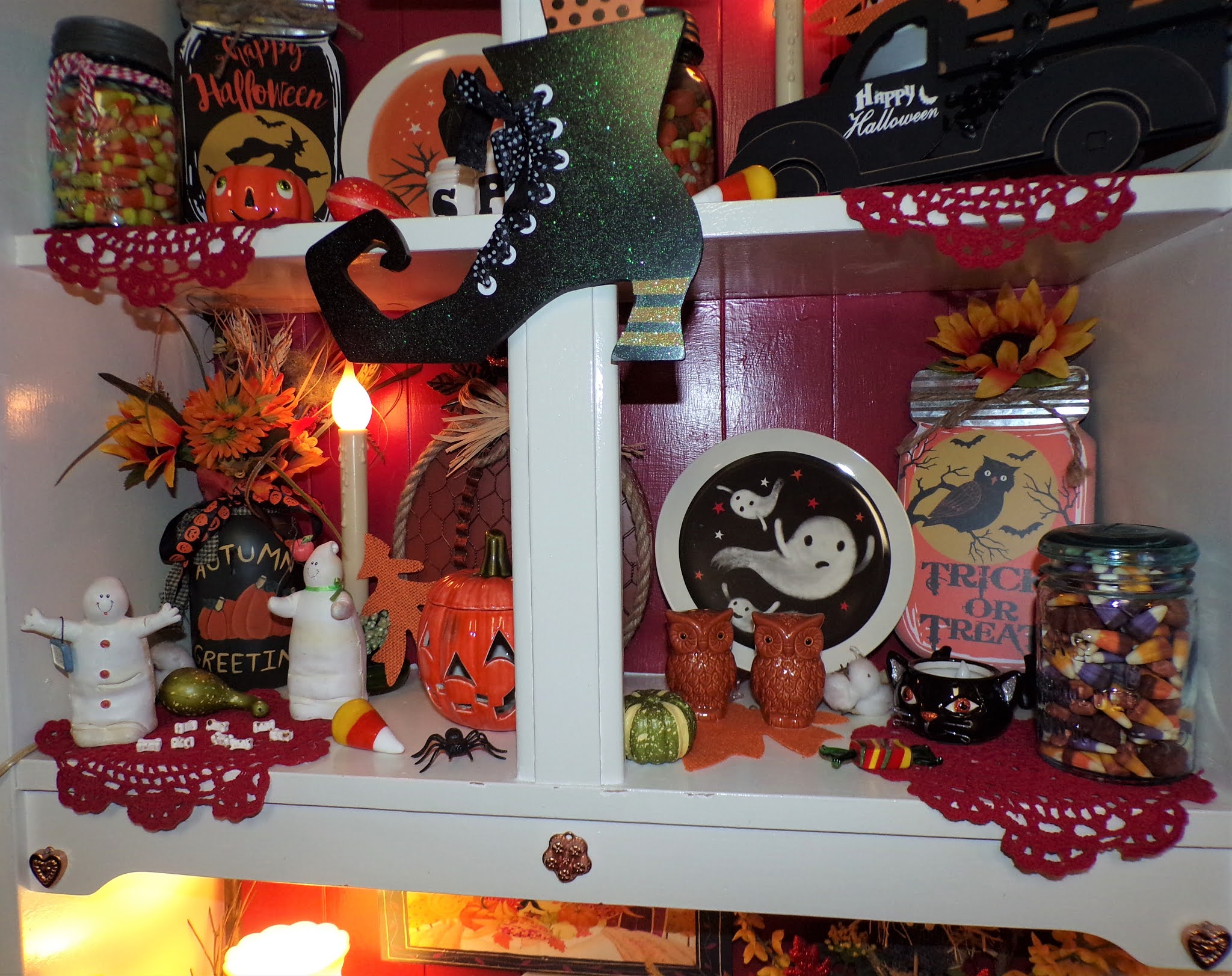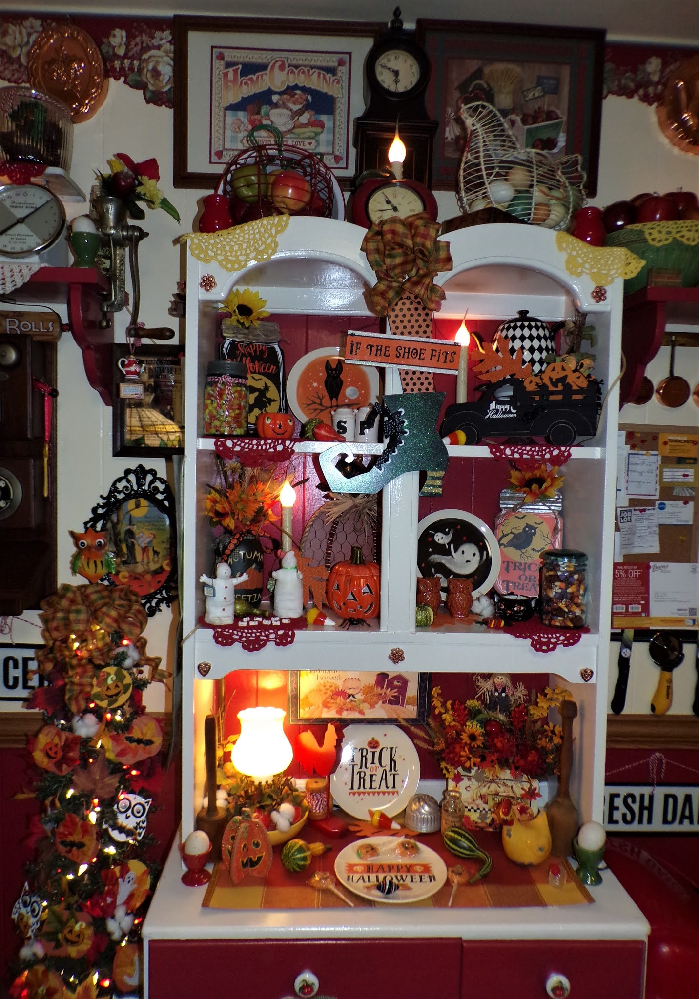 I decided to do a bit of Halloween decorating in the Hutch in our Kitchen.......