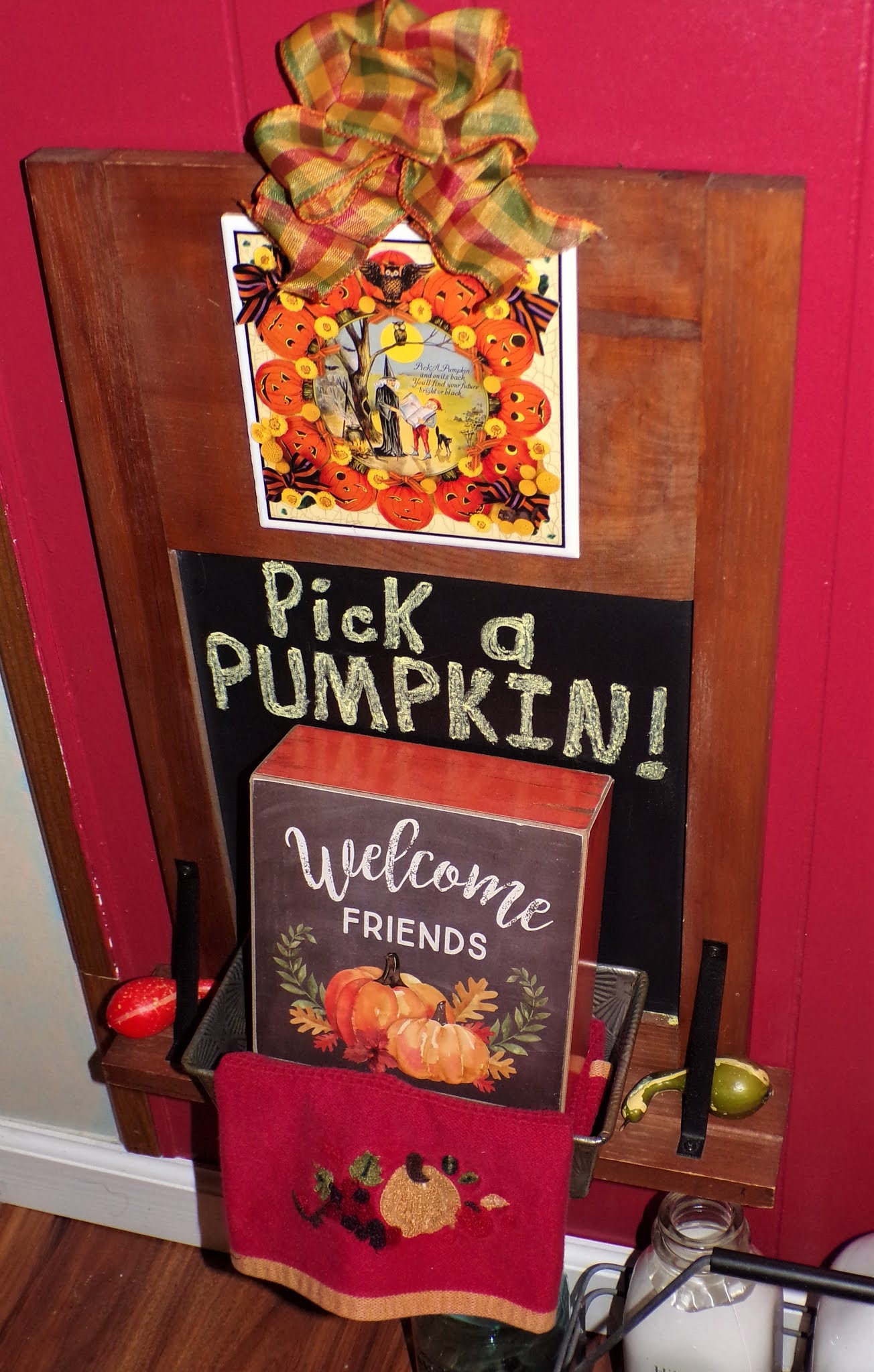 The pumpkin in the back ground was bought at Dollar General last year at 90 % off.......