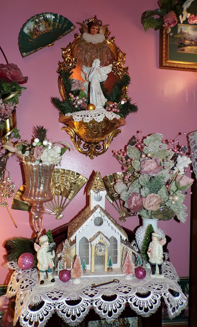 Today, I will be sharing my Pink Victorian Christmas decorations in the Dining Room......