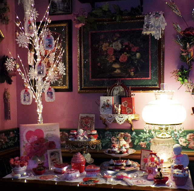 Faux pastries, a cute cherub that I like to think of as Cupid and another Vintage Valentine that was my neighbor Elly's.....