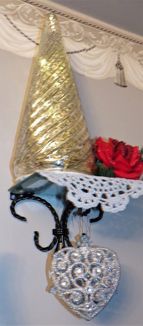 Replaced pine cones and Christmas ornaments with a red rose and a silver heart......