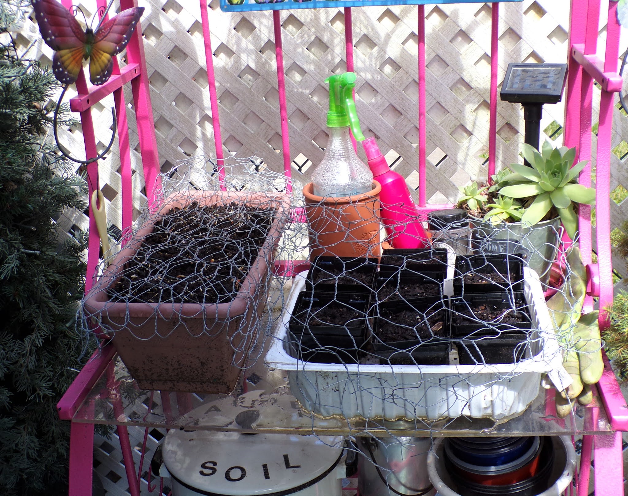 And I had to replant some seeds and put these up on the potting stand to keep the chipmunks from digging in them!!!!