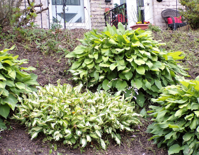 Ironically, it was me who planted these hostas on this slope when the original shrubs put in by the landscaper who built our retaining wall all died!!