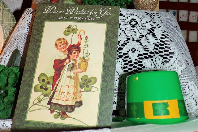 For several years now, I have been decorating for Saint Patrick's Day using my green Old Curiosity Shop dishes that I bought in Salvation Army.....