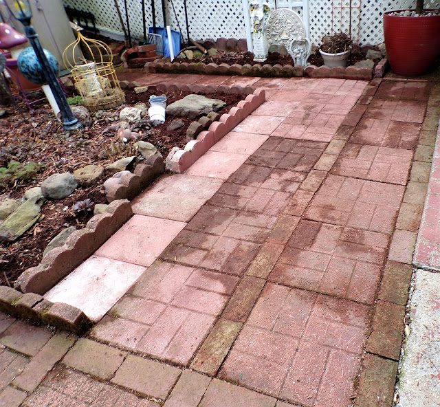 Now with the patio extended with pavers that my neighbor gave me last year.....