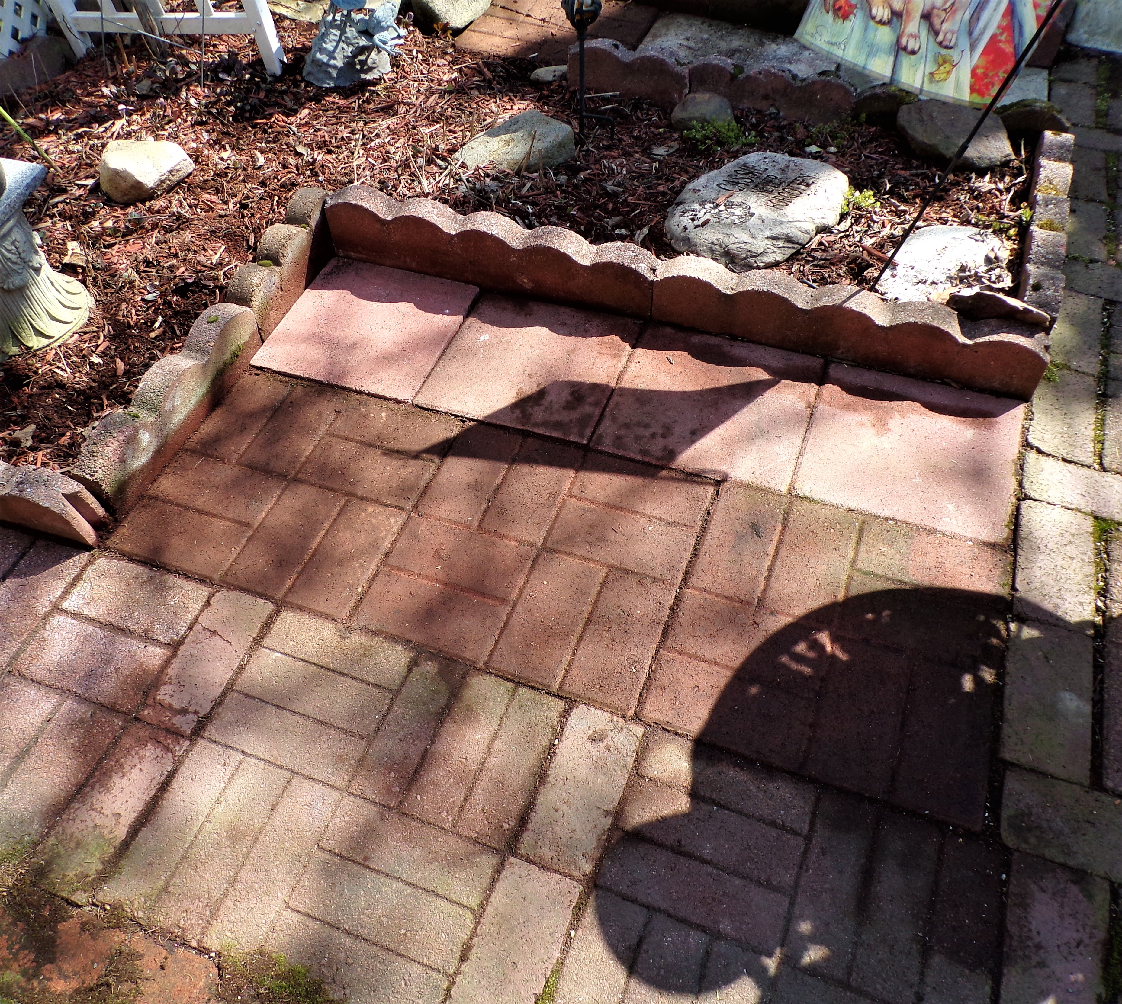 Since I "borrowed" the large brick paver from this area to extend the patio....