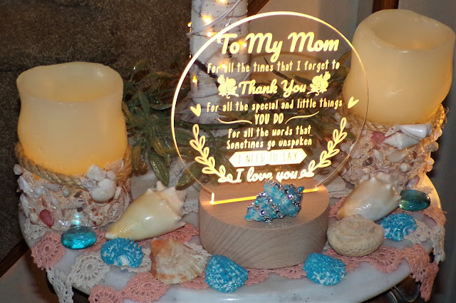 I placed 2 Coastal candles and shells around the base of the Tree.......