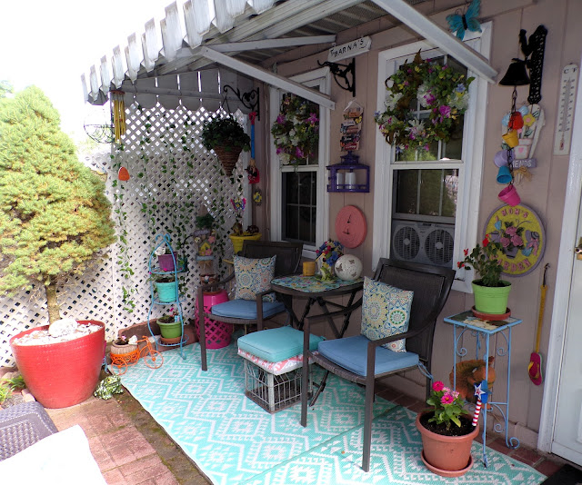 My color theme for the back Patio is a bright and colorful Boho type of look....