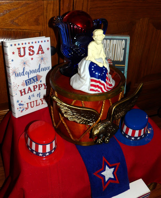 I purchased the lamps that I now have here after I took down my Patriotic decorations last year.....